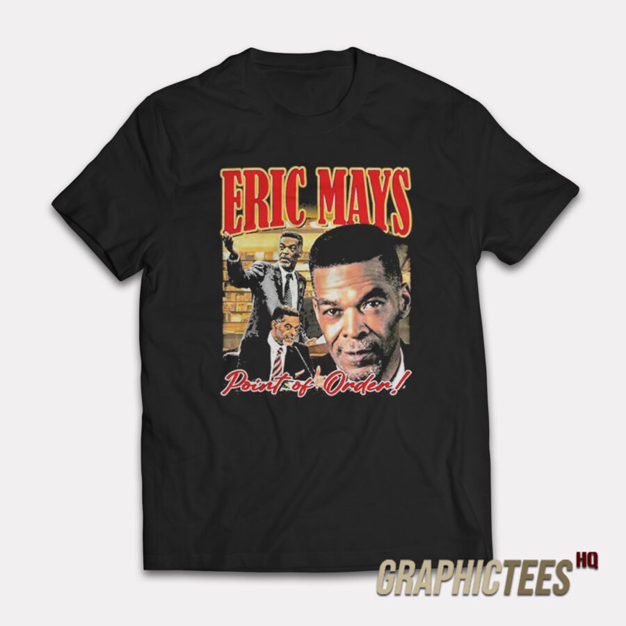Eric Mays Point Of Order T-Shirt is made from the premium quality cotton. We only use a high-quality print for a high-end finish. We also guarantee your satisfaction with this durable print that will not fade. This t-shirt really suits you to stay awesome in any way. So, get it now with the best price for any size (S, M, L, XL, 2XL, 3XL, 4XL, 5XL).