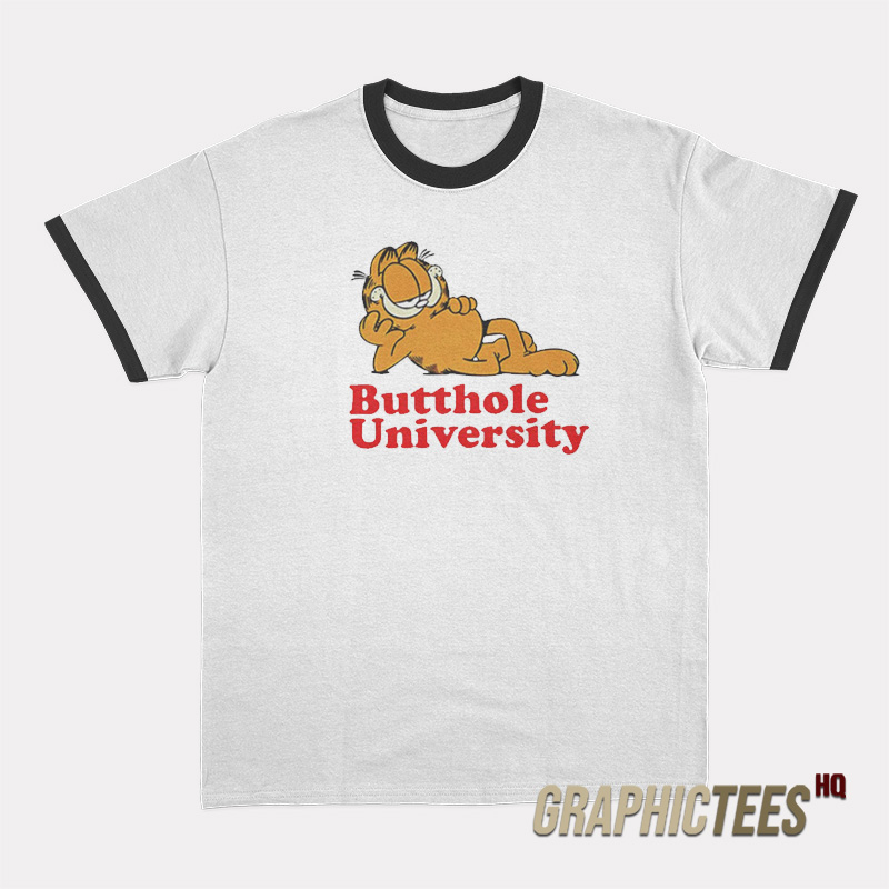 graphicteeshq only produces high-quality and also great design t-shirt. Certainly, Garfield Butthole University Ringer T-Shirt is made from the premium quality cotton. So, get it now with the best price for any size (S, M, L, XL, 2XL, 3XL, 4XL). Further, we only use a high-quality print for a high-end finish. We also guarantee your satisfaction with this durable print that will not fade. So, this ringer t-shirt really suits you to stay awesome in any way.