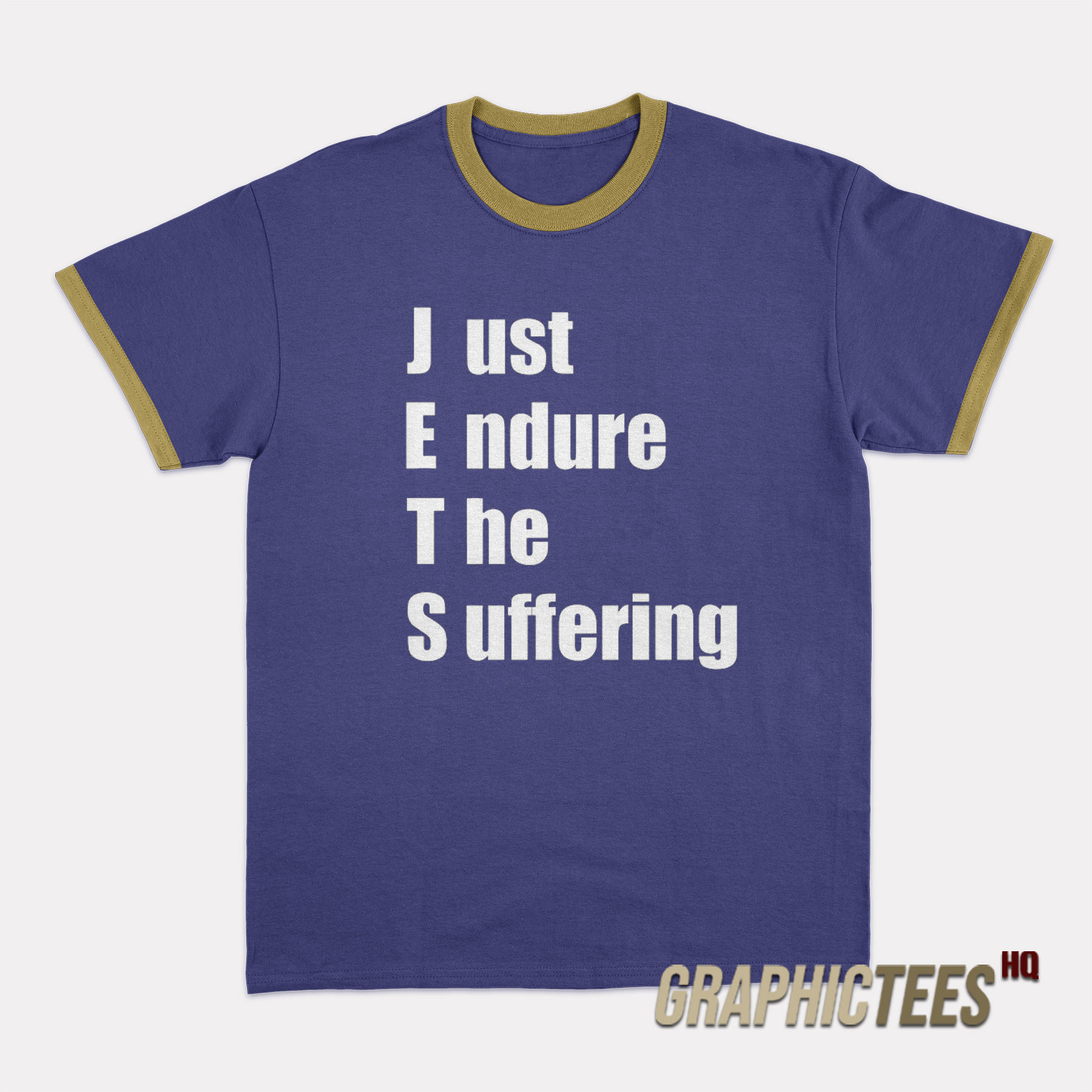 graphicteeshq only produces high-quality and also great design t-shirt. Certainly, Just Endure The Suffering Ringer T-Shirt is made from the premium quality cotton. So, get it now with the best price for any size (S, M, L, XL, 2XL, 3XL, 4XL). Further, we only use a high-quality print for a high-end finish. We also guarantee your satisfaction with this durable print that will not fade. So, this ringer t-shirt really suits you to stay awesome in any way.