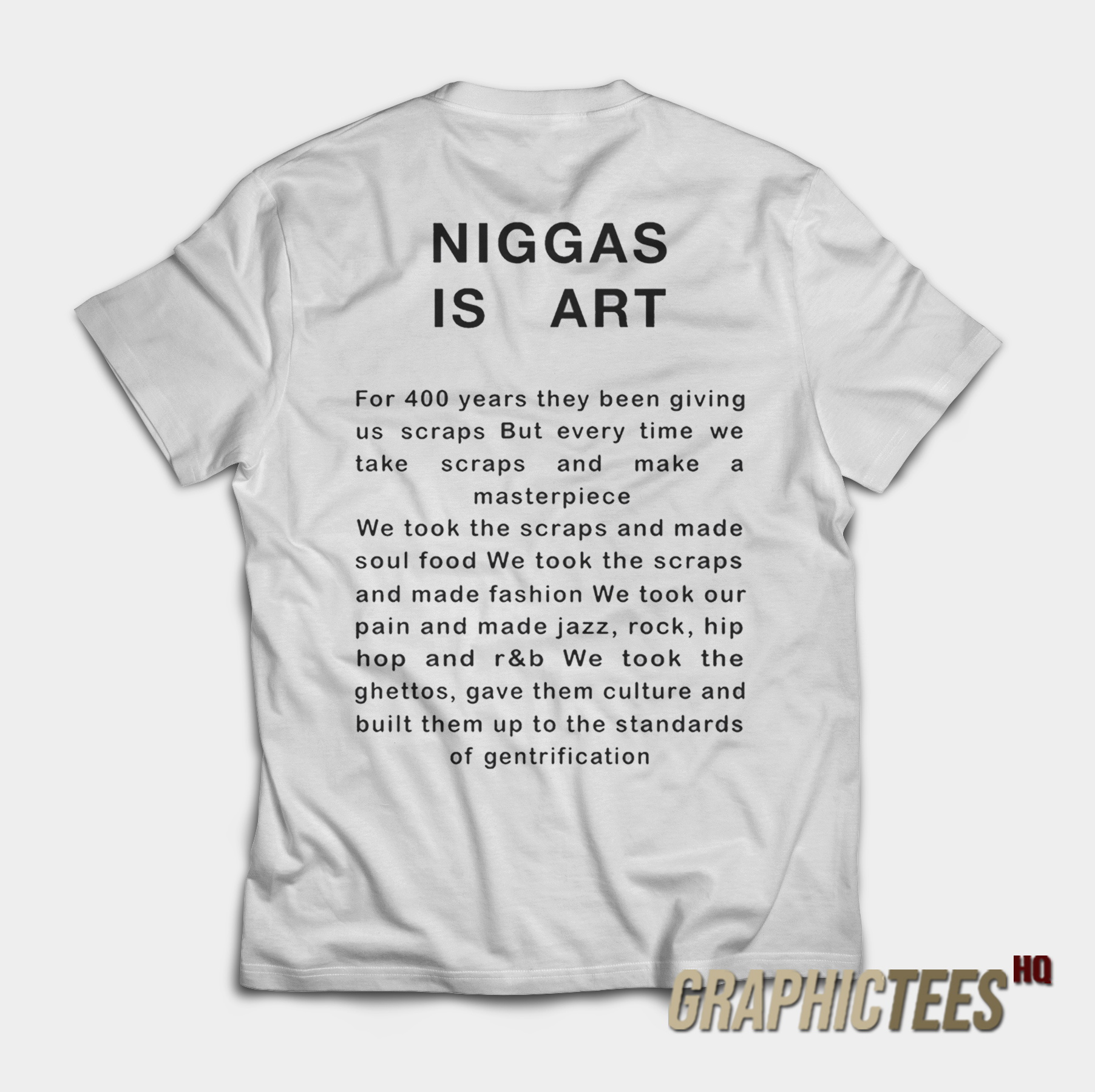 Niggas Is Art T-Shirt made from the premium quality cotton. We only use a high-quality print for a high-end finish. We also guarantee your satisfaction with this durable print that will not fade. This t-shirt really suits you to stay awesome in any way. So, get it now with the best price for any size (S, M, L, XL, 2XL, 3XL, 4XL, 5XL).
