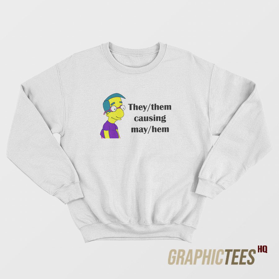 Greetings to looking Sweatshirt at Graphicteeshq. They Them Causing May Hem Sweatshirt is the original design that we created in our studio. This sweatshirt would be great for anyone who enjoyed the show. It’s also a good option for a casual hangout. Besides that, this sweatshirt is the best gift that will allow you to express with top quality designs to the world. So, get it now with the best price for any size (S, M, XL, 2XL, 3XL, 4XL).