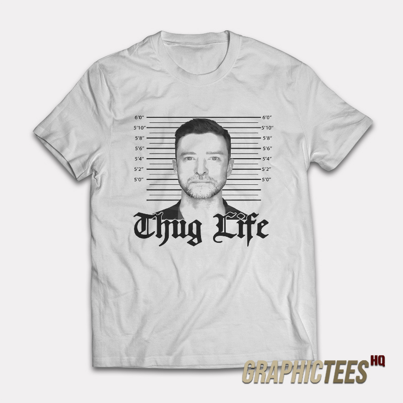 Thug Life Justin Timberlake Mugshot T-Shirt made from the premium quality cotton. We only use a high-quality print for a high-end finish. We also guarantee your satisfaction with this durable print that will not fade. This t-shirt really suits you to stay awesome in any way. So, get it now with the best price for any size (S, M, L, XL, 2XL, 3XL, 4XL, 5XL).